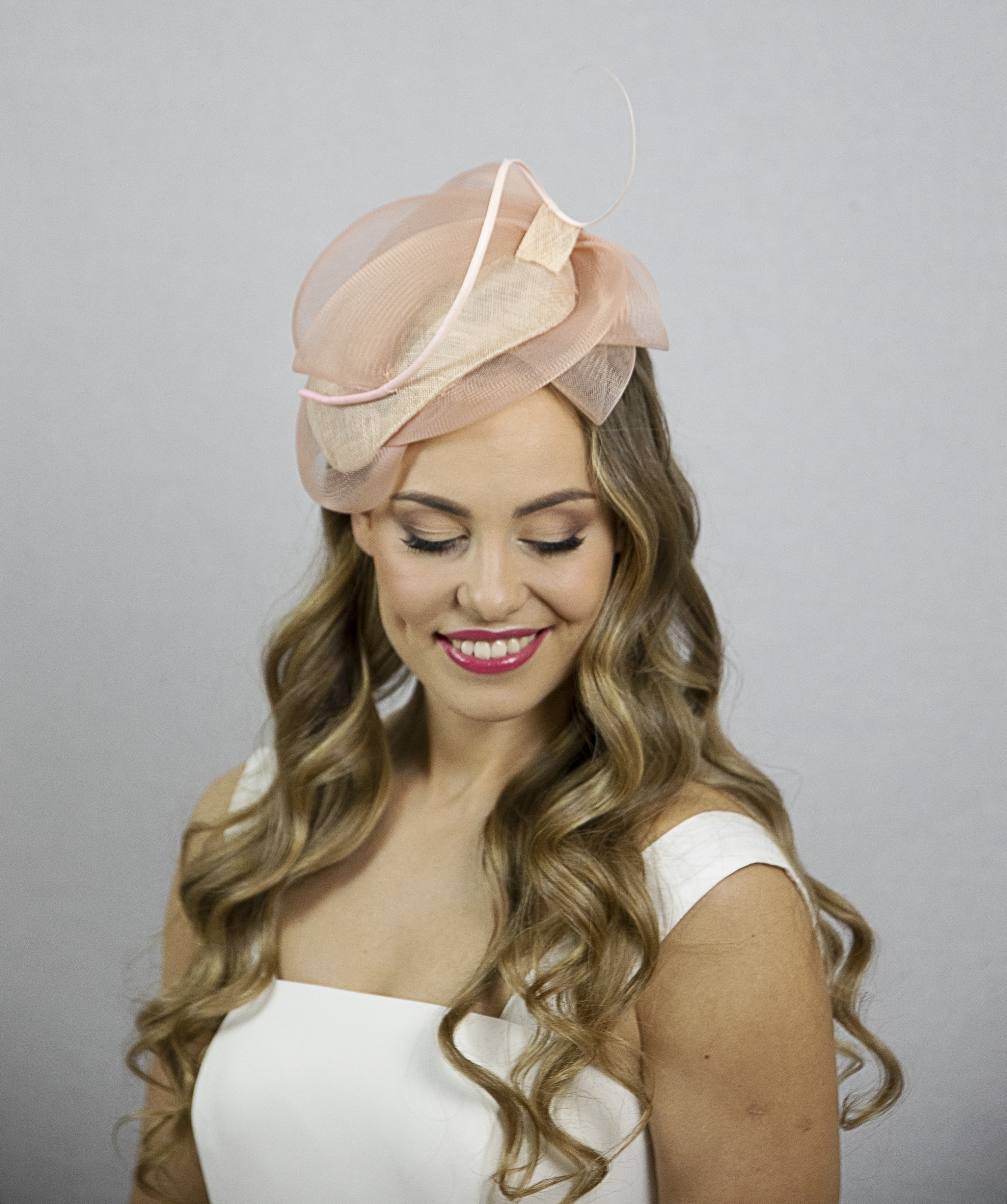 Made from sinamay fabric; trimmed with feather quill and matching crinoline.